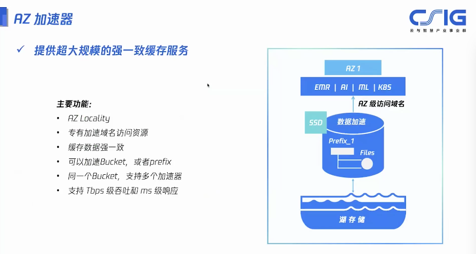 AZ加速器,采用了海量强一致的缓存技术,能够在可用区级别,利用高性能的SSD集群提供Tbps级海量吞吐;