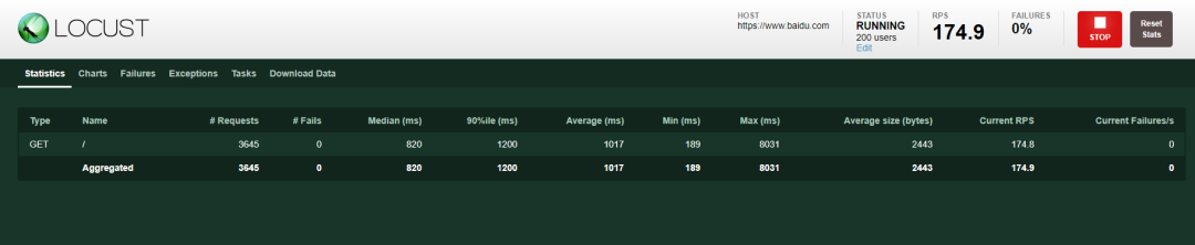 Locust是基于Python实现的,内部使用协程模拟大量并发,同时支持分布式部署,并且除了支持命令行之外还有一个非常漂亮的web界面。