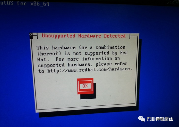 安装Redhat/CentOS系统时提示Unsupported Hardware Detected(硬件不支持)