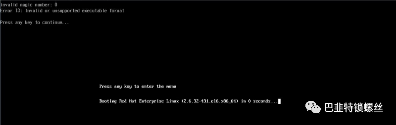 UEFI模式下安装Redhat 6.x/7.x系统时如果选择了tboot软件包,系统装完无法启动。提示:invalid magic number:0 Error 13:Invalid or unsupported executable format
