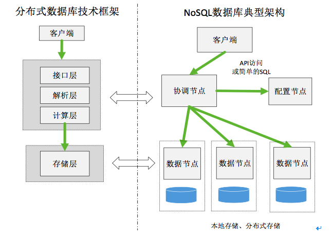 NoSQL数据库通常有三大组件:协调节点、数据节点和配置节点,各组件的功能如下: