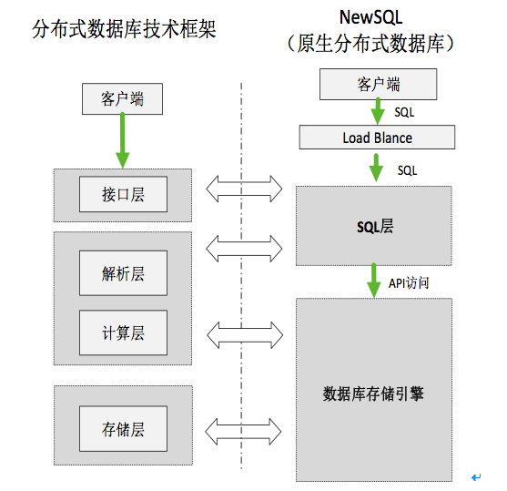 业界常用的NewSQL数据库有两种技术路线:分库分表的数据库访问中间件方式和原生分布式数据库方式。