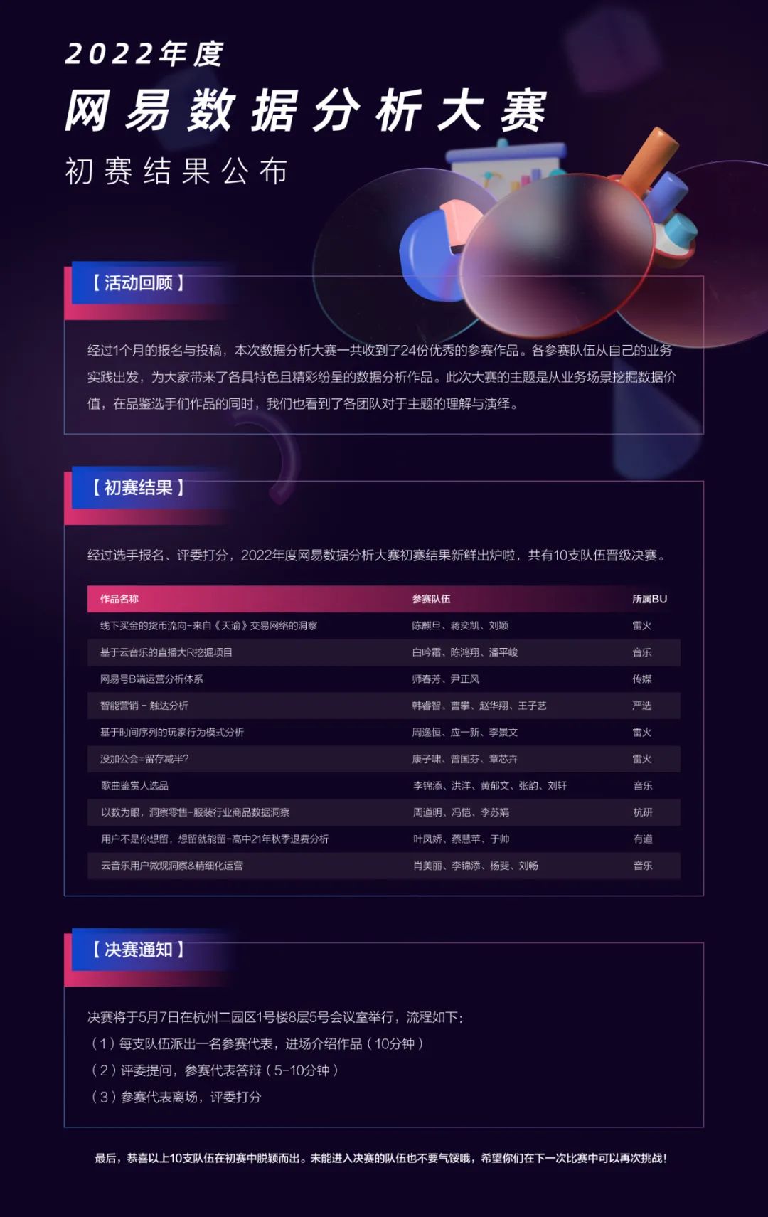 2022网易数据分析大赛初赛结果出炉,杭研晋级决赛