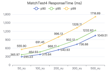 图表中横坐标轴的 “50_vu”、“100_vu” 等中的 “vu” 表示的是 “virtual user”,即性能测试中的并发数;50_vu 表示 50 个并发用户,100_vu 表示 100 个并发用户,以此类推…