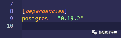 创建好项目后,在 cargo.toml 里添加 postgres 的依赖: