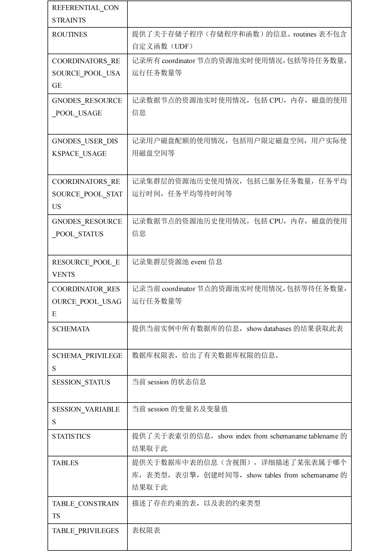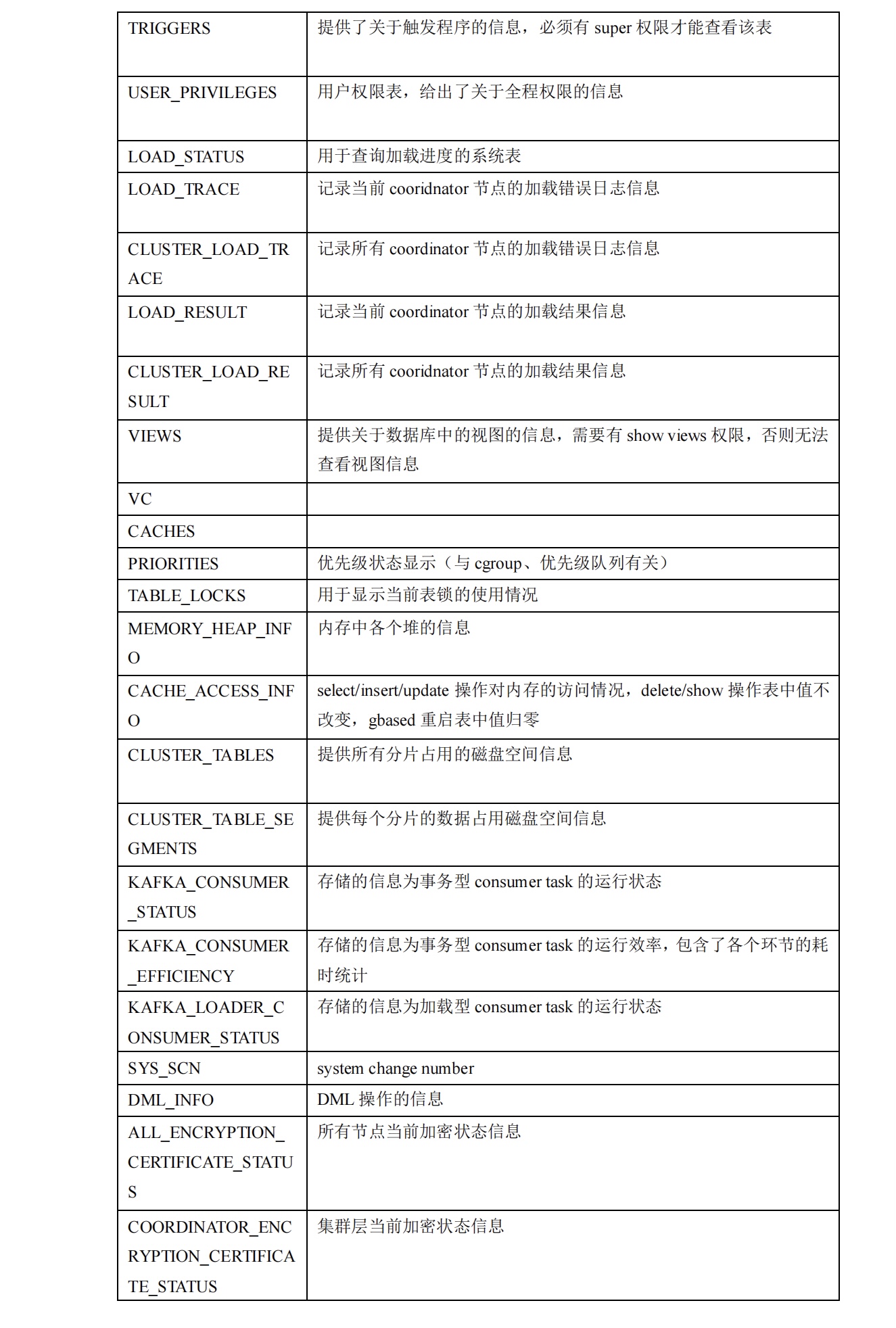 GBase 8a MPP Cluster 中的系统表存在于四个 database 中,