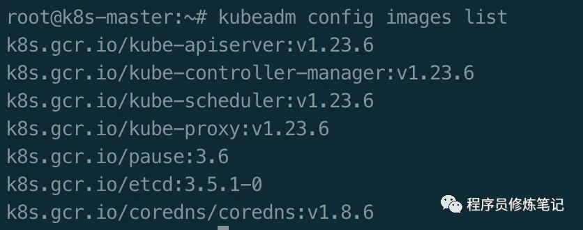set -o errexitset -o nounsetset -o pipefail##这里定义版本,按照上面得到的列表自己改一下版本号KUBE_VERSION=v1.23.6KUBE_PAUSE_VERSION=3.6ETCD_VERSION=3.5.1-0DNS_VERSION=v1.8.6##这是原始仓库名,最后需要改名成这个GCR_URL=k8s.gcr.io##这里就是写你要使用的仓库DOCKERHUB_URL=k8simage##这里是镜像列表,新版本要把coredns改成coredns/corednsimages=(kube-proxy:${KUBE_VERSION}kube-scheduler:${KUBE_VERSION}kube-controller-manager:${KUBE_VERSION}kube-apiserver:${KUBE_VERSION}pause:${KUBE_PAUSE_VERSION}etcd:${ETCD_VERSION}coredns:${DNS_VERSION})##这里是拉取和改名的循环语句for imageName in ${images[@]} ; do docker pull $DOCKERHUB_URL/$imageName docker tag $DOCKERHUB_URL/$imageName $GCR_URL/$imageName docker rmi $DOCKERHUB_URL/$imageNamedonedocker tag k8s.gcr.io/coredns:v1.8.6 k8s.gcr.io/coredns/coredns:v1.8.6docker rmi k8s.gcr.io/coredns:v1.8.6