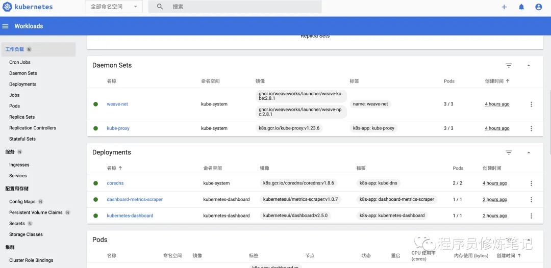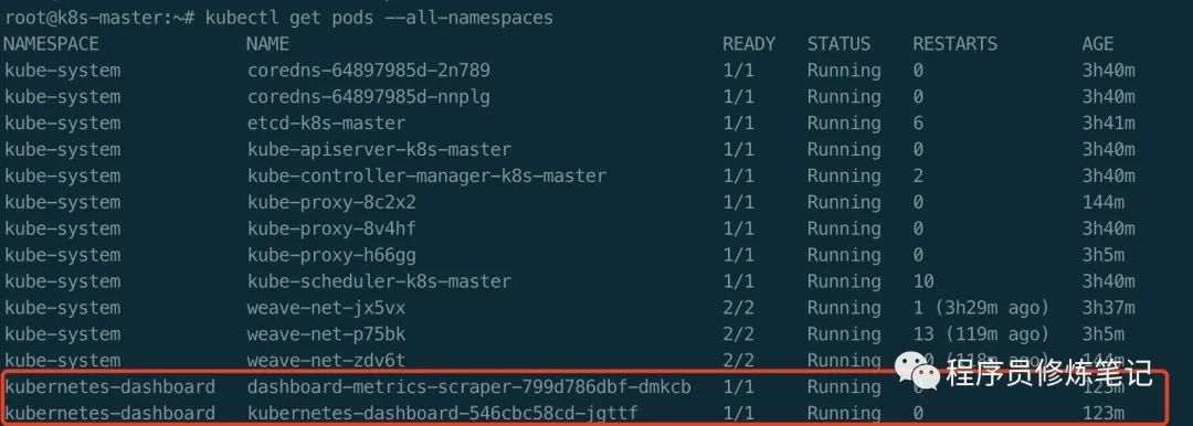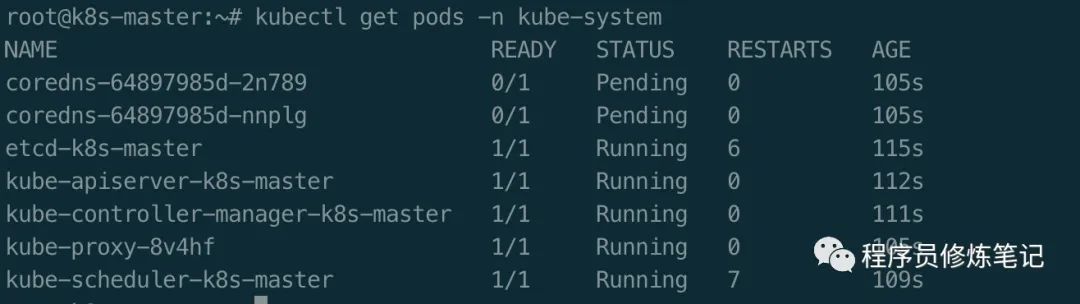 # 查看k8s默认工作空间(kube-system)的各个Pod的状态$ kubectl get pods -n kube-system