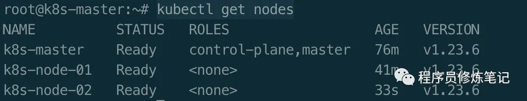 两个WorkNode部署成功以后我们在Master节点上执行以下命令: