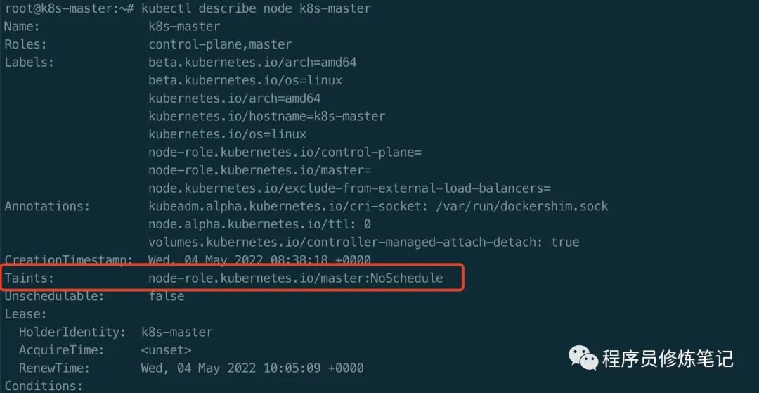 Master节点默认被加上了node-role.kubernetes.io/master:NoSchedule这样一个“污点”,其中键是node-role.kubernetes.io/master,而没有提供值。