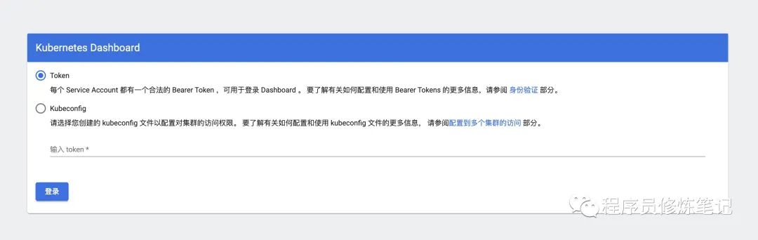 浏览器访问http://localhost:8001/api/v1/namespaces/kubernetes-dashboard/services/https:kubernetes-dashboard:/proxy/#/login