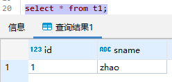 检索t1表的数据,插入了1条记录