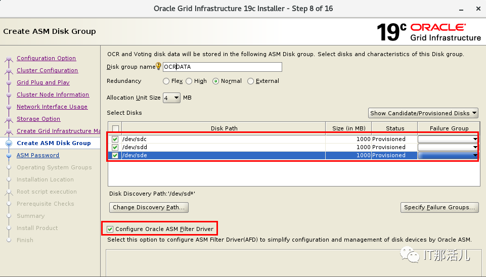 1)更新Oracle ASM磁盘发现字符串以使Oracle ASMFD能够被发现设备。