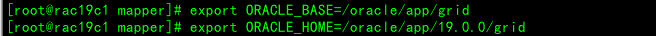 $su -#export ORACLE_BASE=/oracle/app/grid#export ORACLE_HOME=/oracle/app/19.0.0/grid