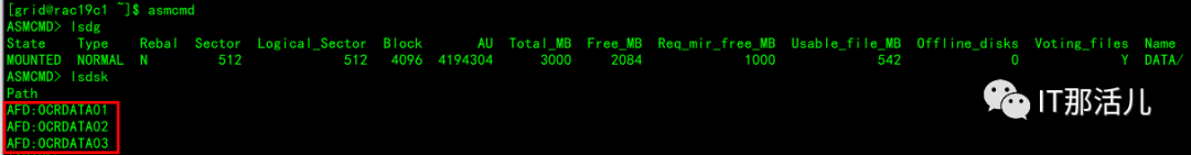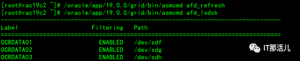 # /oracle/app/19.0.0/grid/bin/asmcmd afd_refresh# /oracle/app/19.0.0/grid/bin/asmcmd afd_lsdsk