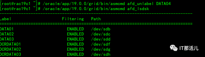 #/oracle/app/19.0.0/grid/bin/asmcmd afd_unlabel DATA04#/oracle/app/19.0.0/grid/bin/asmcmd afd_lsdsk