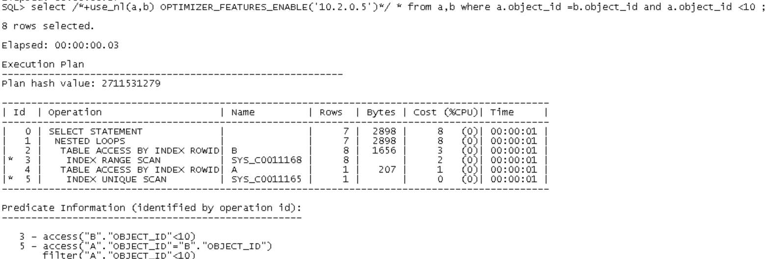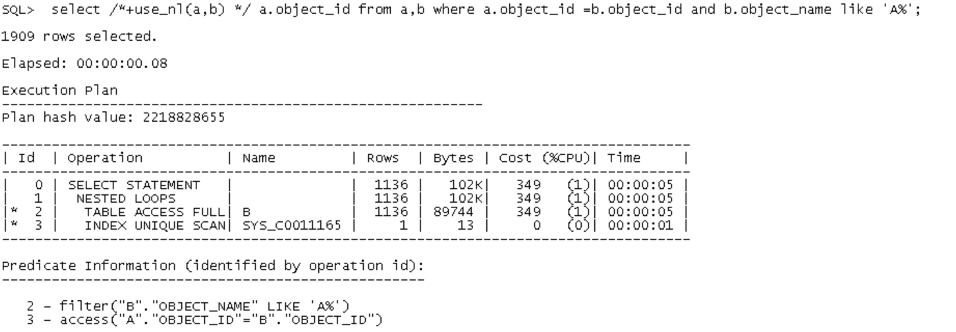 oracle中,可以使用use_nl(表名) 或者 USE_NL_WITH_INDEX(表索引) 来 强制优化器走嵌套循环连接。