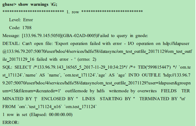 通过 kerberos 认证不落地导出数据到 hdfs,数据可以正常导出,但会有报错信息,