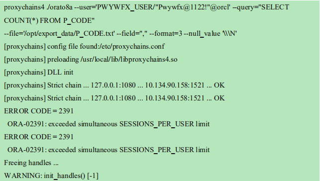 13 orato8a query 方式导出报错 ORA-02391 连接数不足