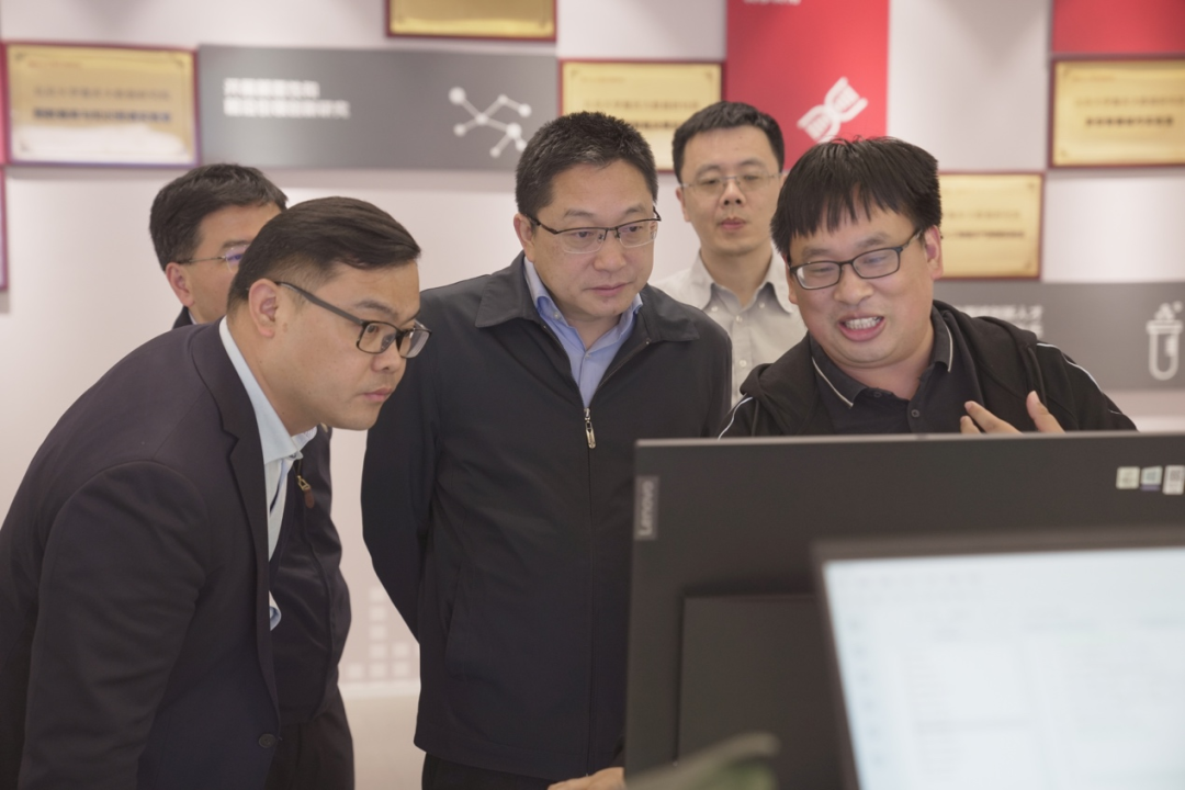 李文杰(右一)在研究院介绍研究成果