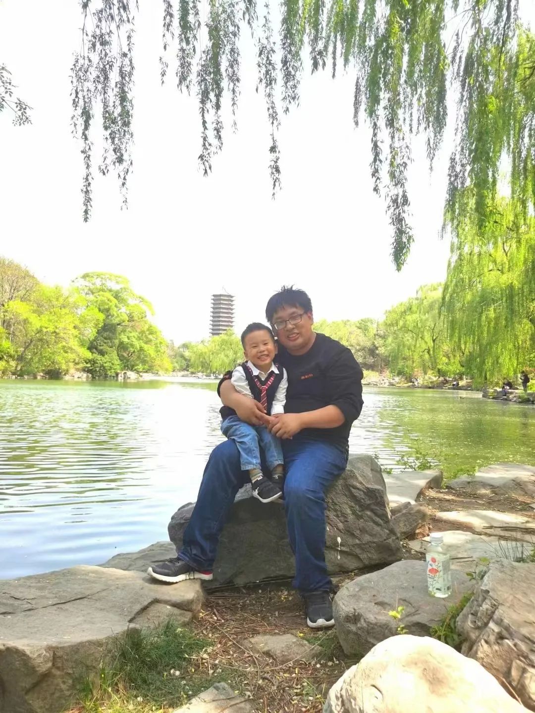 李文杰与儿子在北大未名湖