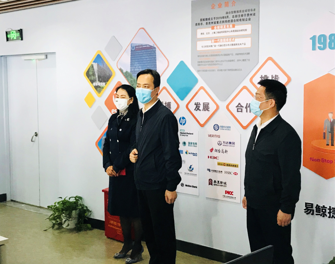 5月6日,贵阳市委副书记、市长马宁宇到贵州易鲸捷信息技术有限公司调研企业发展和人才队伍建设情况,贵安新区党工委委员、管委会副主任毛胤强,市政府秘书长李昂以及市大数据局、市金融办、贵阳银行、贵阳农商银行、市公共交通投资运营集团有限公司主要负责人参与调研。