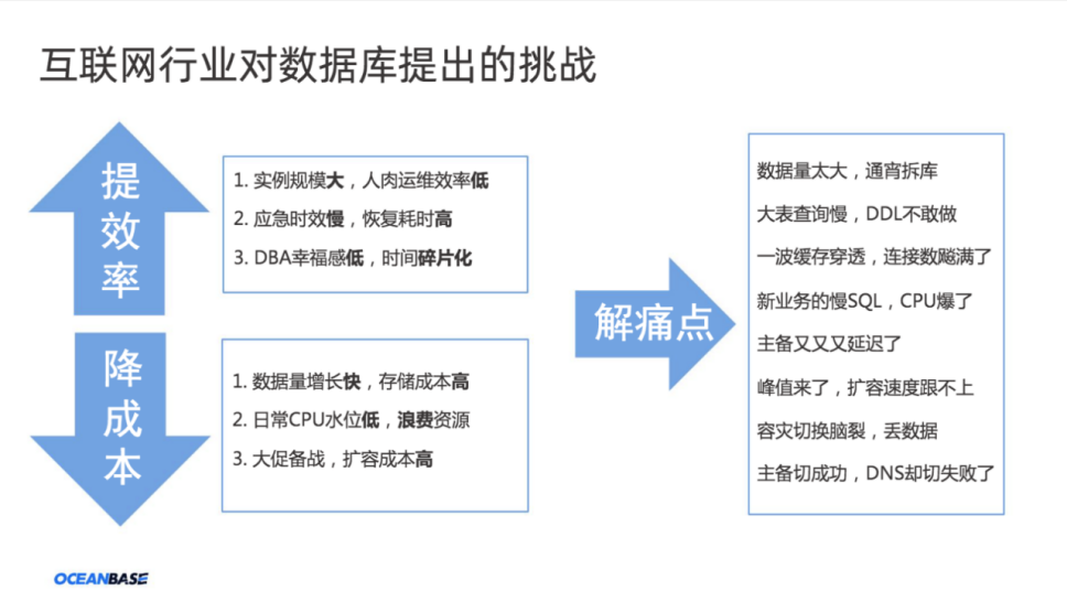首先从效率上,因为 DBA 需要运维的实例数更多了,不同的业务线,不同的应用,面临不同问题的时候,DBA 的幸福感是很低的,时间是碎片化的。对于业务来说,感知就是数据库本身的容量防御能力不足,应急时效也难以保证,比如电商大促、直播、秒杀等场景上,很多时候支撑能力是不够的。