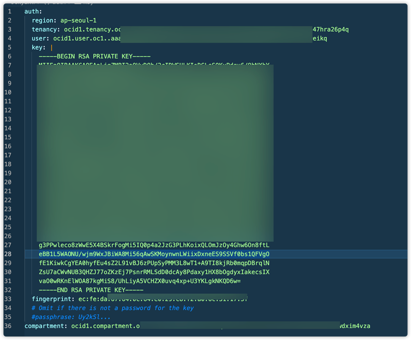 region/tenancy/user/key/fingerprint/compartment信息,具体配置流程参考OCI API权限配置相关内容。