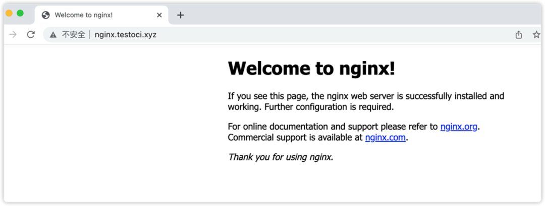 使用浏览器,输入域名nginx.testoci.xyz,应用正常访问。