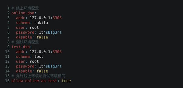 由于很多的功能需要数据库的元数据来进行辅助判断,所以当不指定数据库环境的时候,很多功能将会采取降级的策略,所以我们强烈建议您在配置文件中指定相关数据库环境。为了保护线上数据库的安全,我们将数据库环境区分为线上和测试两种环境,但是这并不意味着您一定需要两个数据库环境,但至少建议您指定一个测试环境。