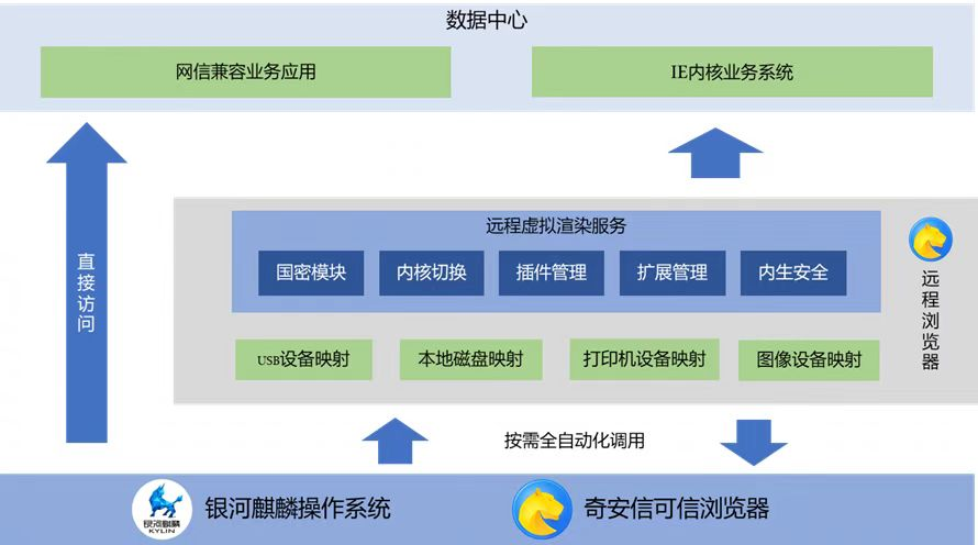 近年来,企业日常办公开始大量采用网信终端,但企业内部仍然存在相当一部分业务系统基于IE内核开发,使用了IE内核专用的ActiveX控件技术,而网信终端IE内核缺失导致无法正常访问这些业务系统。同时,此类业务系统存在改造成本巨大、改造周期无法预测等困难。基于银河麒麟操作系统的奇安信远程浏览解决方案完美解决了以上问题,助力各行业用户业务系统网信改造升级。