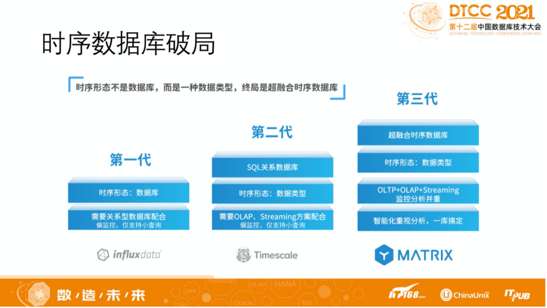 当前,时序架构基本上都是 DIY 搭建出来的技术栈,这样的架构栈通常会出现“2大特征”:1、慢;2、复杂。其中,慢是指使用专用产品,看似很快,但端到端组合在一起会慢;复杂意味着技术栈复杂,稳定性差,开发运维成本高,软硬件成本高,性能低,人才稀缺,把复杂度留给了用户。