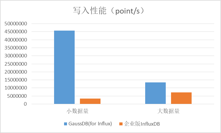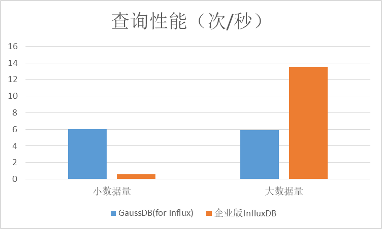 在GaussDB(for Influx)2节点对比开源版3节点场景下,GaussDB(for Influx)给客户带来了更高的写入能力、更稳定的查询能力、更高的压缩率。GaussDB(for Influx)写入能力在小数据量场景下是开源企业版的13倍,在大数据量场景下是开源企业版的1.8倍;查询能力在两种场景下表现稳定,在大部分查询场景下优于开源企业版;在压缩率方面,同样数据模型下,高出开源版本40%。