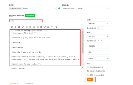 通过新建Pull Request提交合并需求至openGauss社区。社区上详细操作请参见“2.4.4 贡献代码和文档”。