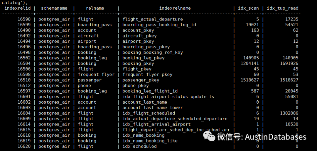 通过这个表可以查看到底有多少索引并不在工作中,或者从PG的开机后,并没有进行工作。但是这样的工作对于主键是不合适的,所以查看这样的工作可以对主键进行一个屏蔽。