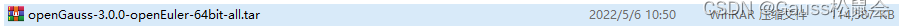 -rw------- 1 root root 117337040 May 6 11:21 openGauss-3.0.0-openEuler-64bit-all.tar.gz