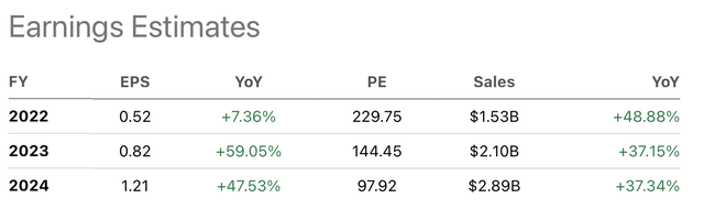 尽管 Datadog 的收入和每股收益预计将继续增长,甚至两年后,但 Datadog 的远期市盈率(尤其是在非公认会计准则基础上)的预测市盈率非常高,这似乎几乎没有出错的余地。值得注意的是,标准普尔 500 指数和纳斯达克指数的平均市盈率目前分别为24.90 倍和 31.15 倍。任何未来的盈利失误都可能会给 Datadog 的股票带来巨大的下行压力。