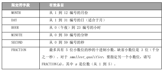 表示时间范围)。DATETIME 和 INTERVAL 限定符之间存在如下差异: