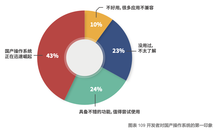 不过,不足亦是我们前进的动力。外患的压力下,国内开发者对操作系统的关注度日趋增长,有 67% 的开发者表示国产操作系统正在迅速崛起,也推荐尝试使用。