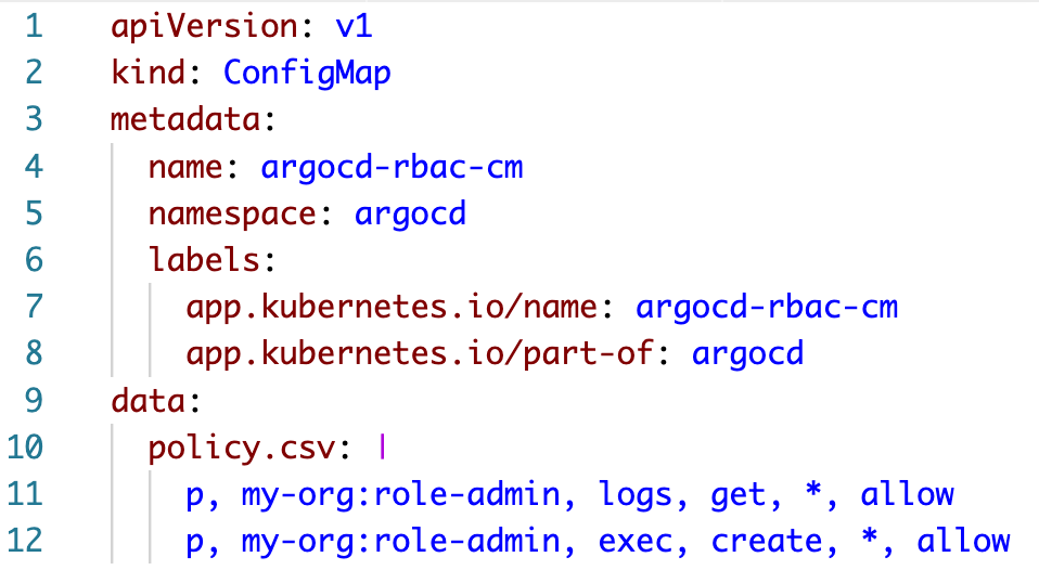 Argo CD 用于管理多个组织的关键基础设施,这使得安全性成为项目的重中之重。我们听取了你的反馈,并引入了额外的访问控制设置,以控制对 Kubernetes Pod 日志和新的 Web 终端功能的访问。下面的代码片段演示了 argocd-rbac-cm Kubernetes ConfigMap,它为一个示例 org-admin 角色启用了这两个功能:
