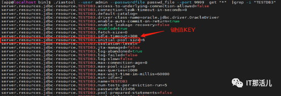 ./iastool --user admin --passwordfile passwd_file --port 9999 get "*" |grep -i "TESTDB3.max-pool-size"