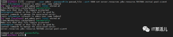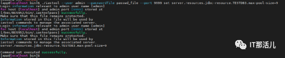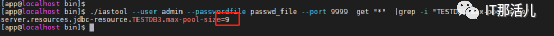 ./iastool --user admin --passwordfile passwd_file --port 9999 set server.resources.jdbc-resource.TESTDB3.max-pool-size=9