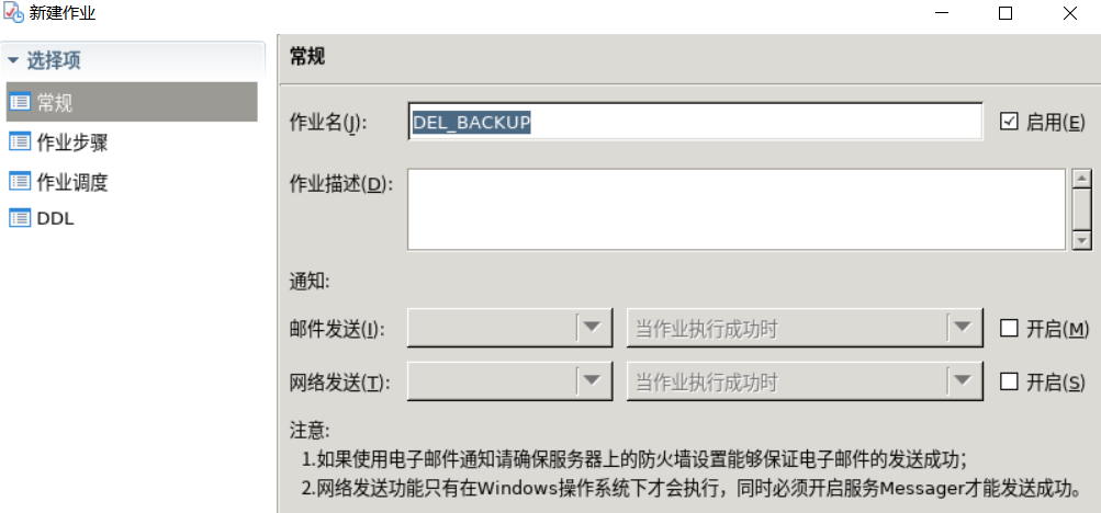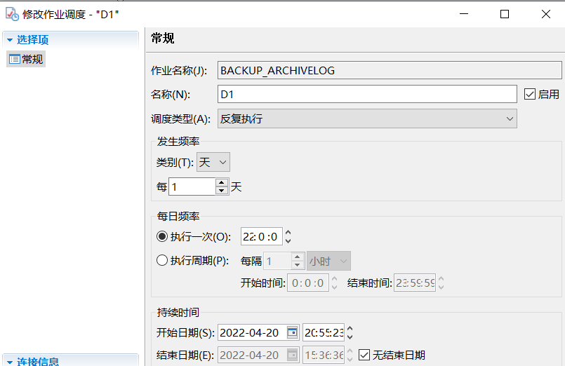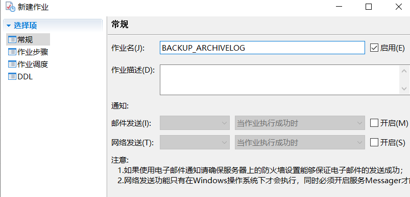 新建作业,作业名为BACKUP_ARCHIVELOG