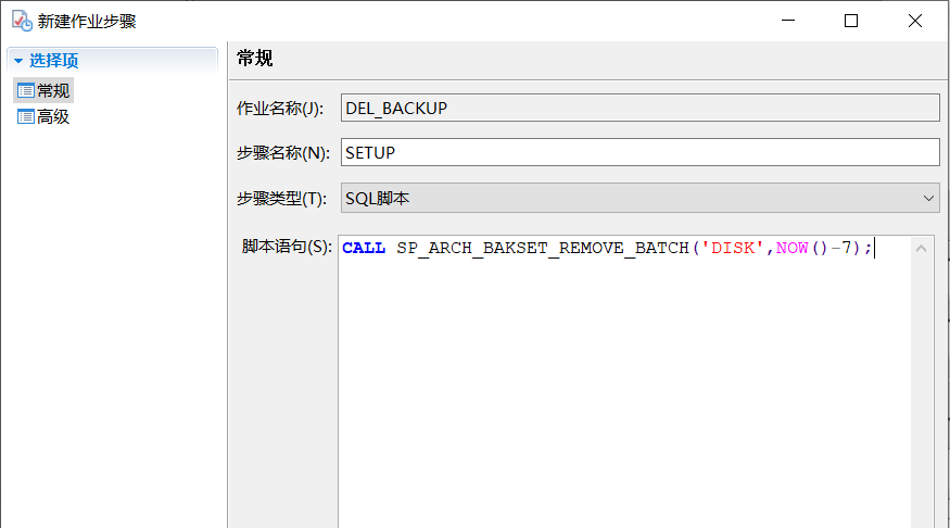 新建作业删除归档日志备份,删除7天以前的归档日志备份