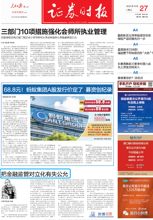 人民日报主管的证券时报10月27日发表了题为《把金融监管对立化有失公允》的文章,指出“简单地把监管对立化,甚至抱怨监管的硬约束在根本上阻滞了金融业务的发展和创新,于逻辑、于现实都很难讲得通,且显失公允。”