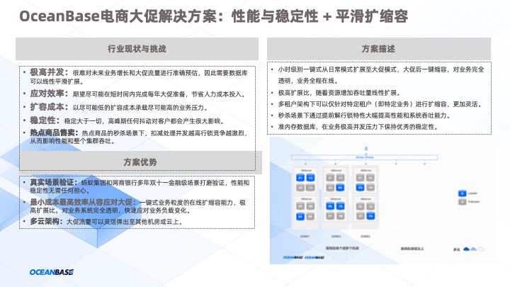 4 月 29 日,OceanBase 面向出海企业举办了一场专享会。出海企业在面临企业快速发展中常会遇到数据库的性能瓶颈、稳定性要求、数据合规、HTAP 能力、多云部署等多种挑战,出海企业如何选择一款高性价比、稳定、安全、具备 HTAP 能力并能灵活部署在现有云资源上的数据库,是 DBA 非常关心的问题。
