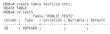在兼容模式下创建表test1,并查看结果,如下所示。