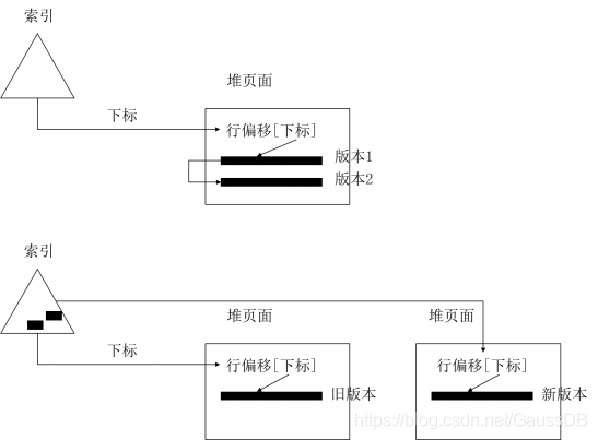 openGauss行存储的多版本机制与业界比较常见的关系数据库有较大的不同,核心区别为行存储的多版本在更新的时候并不是就地更新,而是在原有页面中保留上一个版本,转而在这个页面(如果空间不够会在新页面中)中创建一个新的版本进行历史版本的累积与更新。