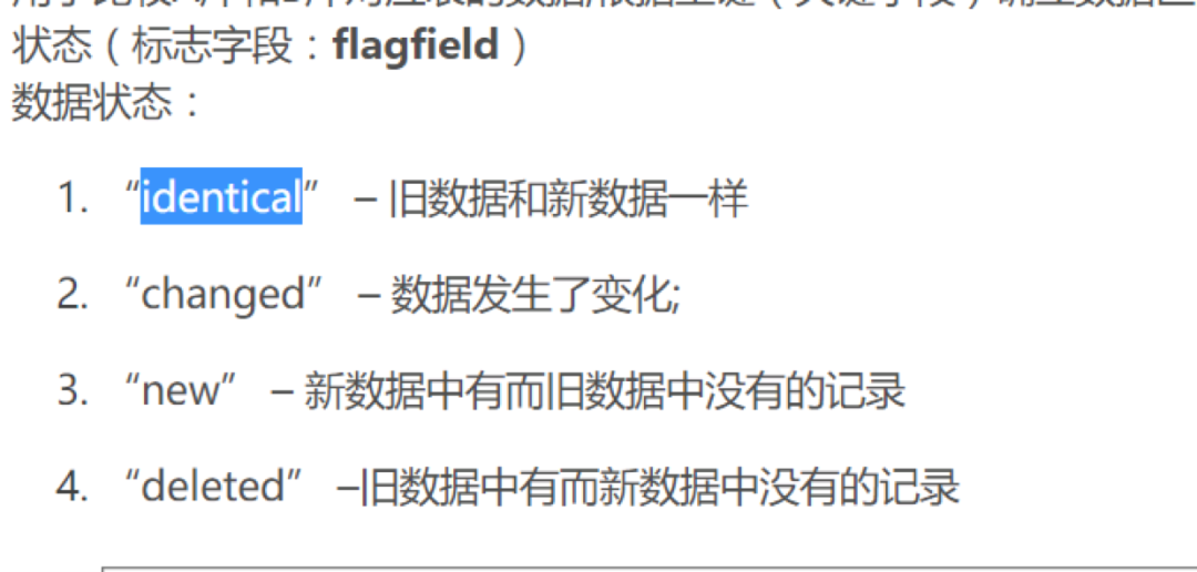 合并记录用于对比新旧数据源的差异,并将数据对比的结果放到标志字段中;