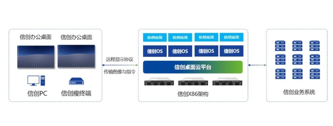 深信服信创云桌面采用全栈的信创架构,从前端的云终端到后台的服务器,都搭载国内自主芯片、操作系统和应用,实现了端到端的适配以及从硬件到软件全平台的安全防护,满足用户的日常办公、开发设计、教育教学等多种场景。